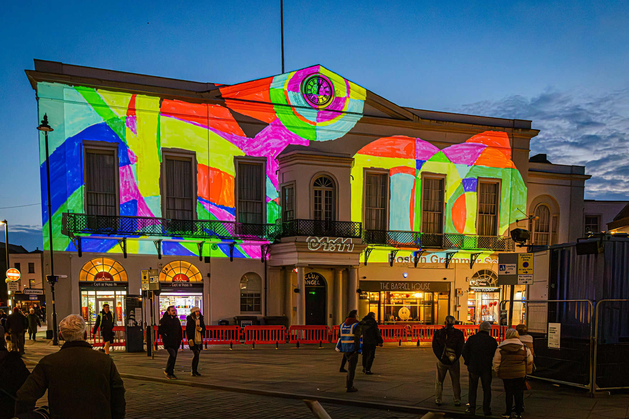 Alongside Boston College students, artwork from local schools, including St Nicholas C.E. Primary Academy, Gipsey Bridge Academy, Carlton Road Primary School, Hawthorn Tree School, and Boston Grammar School was displayed on The Assembly Rooms throughout the event. This provided young artists with an incredible opportunity to see their work projected onto one of Boston’s key landmarks.